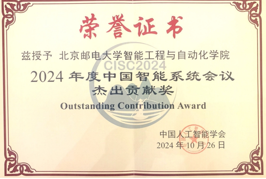 北京邮电大学智能工程与自动化学院荣获本次大会杰出贡献奖,该奖项旨在表彰学院在会议组织和参与方面作出的杰出贡献。