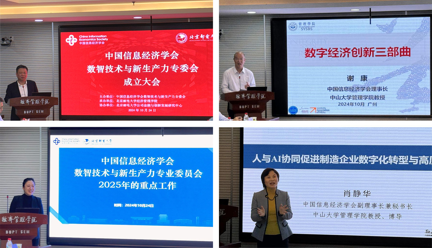 10月24日,由中国信息经济学会数智技术与新生产力专委会主办,北京邮电大学经济管理学院承办,公司金融与创新发展研究中心协办的中国信息经济学会数智技术与新生产力专委会成立大会在北京邮电大学举办。北京邮电大学副校长黄善国出席大会并致辞。中国信息经济学会常务副理事长吕廷杰、中国信息经济学会秘书长肖静华出席会议。来自“四邮四电”等11所高校的专家及师生参会。