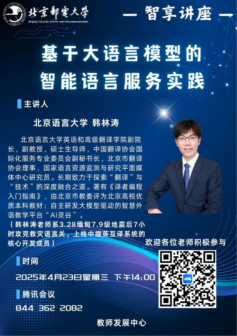 紧扣"技术赋能·教学创新"目标,教师发展中心开展智享讲座系列活动。该系列讲座作为我校教师人工智能素养培训的关键环节之一,通过专家引领、案例解析与实践指导,助力教师系统性提升人工智能应用能力,推动人工智能技术深度融入教学科研,为教育数字化转型提供坚实人才支撑。